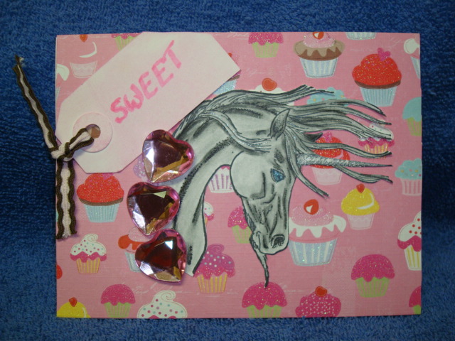 Here is a sample for you ..... I created this for my great niece's birthday. Melody came over and brought this really cute cupcake paper. So she shared....what a good sister. The hearts are from sharps. A wilton product to my surprise. The unicorn image is from Third Coast Rubber Stamps. It was colorized with prisma pencils and gamsol.